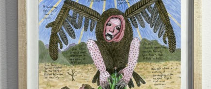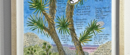 AKA: How To Be A Joshua Tree, ink, watercolor, collage on paper, 12” x 9” (15” x 12” framed in natural poplar), 2025. $POR.