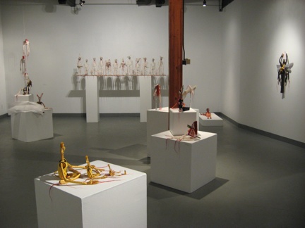 With placement of the work complete, April takes on the lighting while I affix labels. After some slight shuffling of pieces to accommodate lighting limitations the space looks suspiciously like an exhibit.
