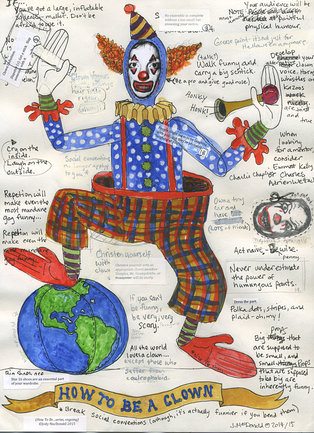 Ink, watercolour, collage on paper, 12″ x 9″, 2015.